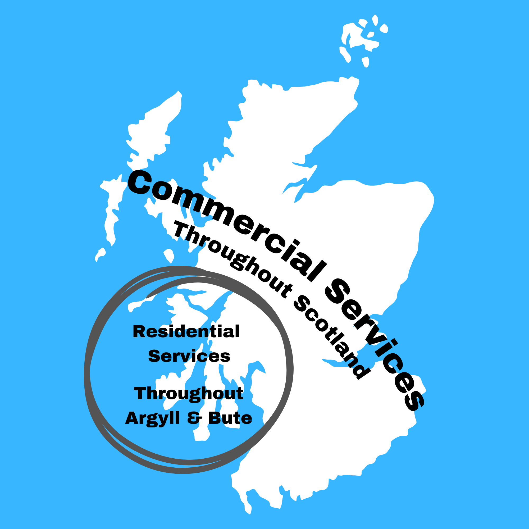 For residential services, such as window cleaning and carpet cleaning, we cover Argyll and the surrounding areas. For commercial services, such as commercial window cleaning, commercial carpet cleaning and TR/19 ventilation cleaning, we cover the whole of Scotland.
